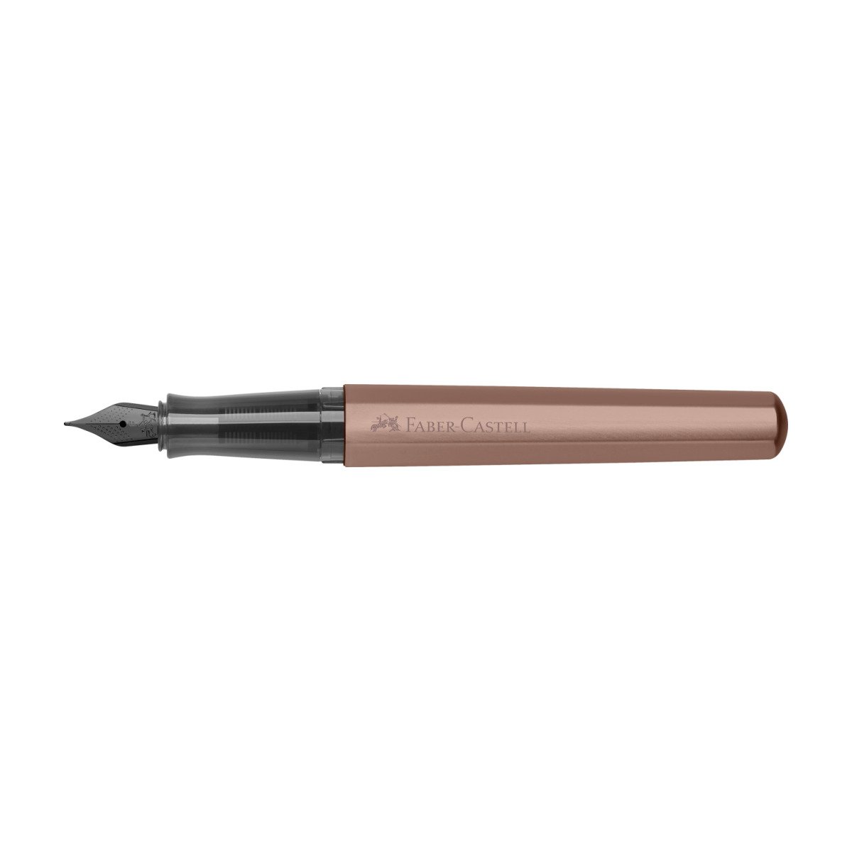 Unikalny, designerski sześciokątny kształt. Korpus wykonany z aluminium. Sprężynujący klips wykonany z metalu. Pióro wieczne wyposażone w stalówkę ze stali nierdzewnej w rozmiarze M. Na mechanizm tłokowy lub naboje (możliwość dokupienia konwertera), niebieski nabój startowy w zestawie. Kolor korpusu brązowy.