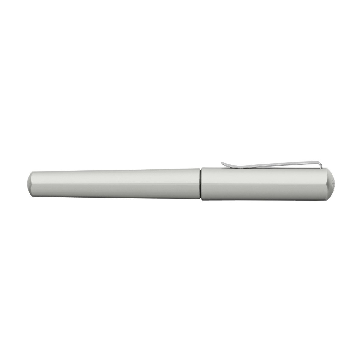 Pióro wieczne o unikalnym, designerskim sześciokątnym kształcie. Korpus wykonany z aluminium, a sprężynujący klips z metalu. Stalówka ze stali nierdzewnej. Optymalna kombinacja atramentu i końcówki zapewnia komfort pisania. Odpowiedni dla osób prawo- i leworęcznych. Nabój startowy w zestawie. Szerokość linii pisania F. Kolor srebrny matowy.