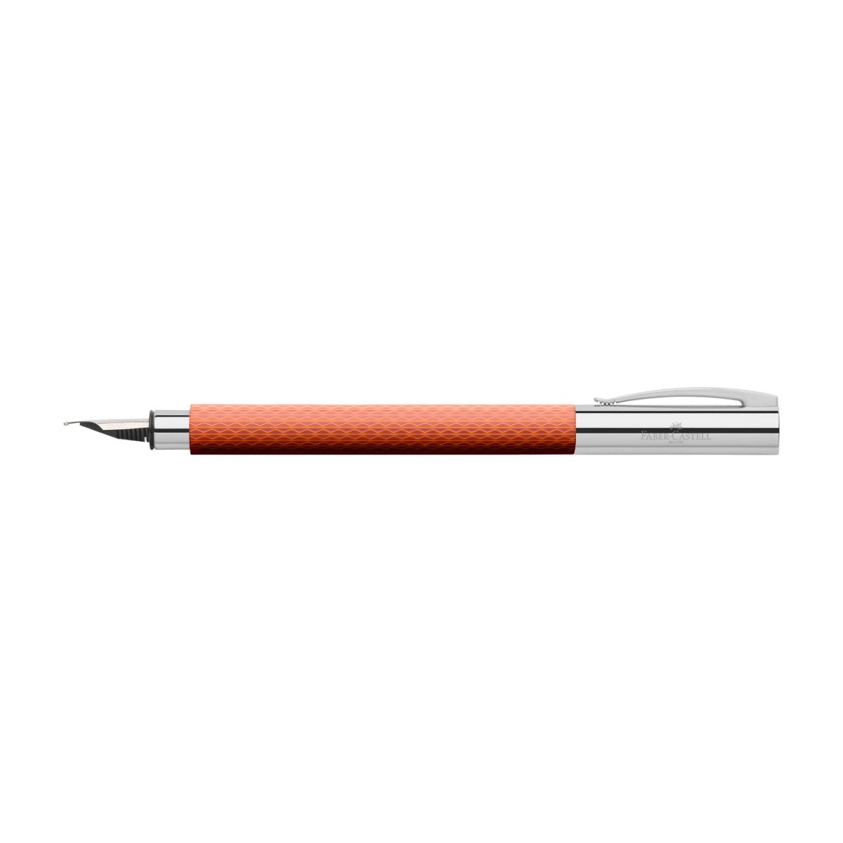 • Pióro wieczne z serii Ambition OpArt Autumn Leaves Sand Faber-Castell w jesiennym pomarańczowym kolorze. Ponadczasowe piękno i klasyczna elegancja w połączeniu ze specjalnie wyselekcjonowanymi materiałami najwyższej jakości zapewnia doskonałe wrażenia podczas użycia. Korpus wykonany został ze szlachetnej lakierowanej żywicy z delikatnym geometrycznym grawerem giloszowym. Elementy wykończenia i skuwka ze sprężynowym klipsem wykonane zostały z chromowanego i polerowanego metalu. Pióro wyposażone zostało w wysokiej jakości stalówkę ze stali nierdzewnej o szerokości linii pisania EF (extra fine – bardzo cienka). Posiada podwójny system napełniania: konwerter z możliwością zamiany na naboje atramentowe.  Dostarczane w białym pudełku upominkowym.