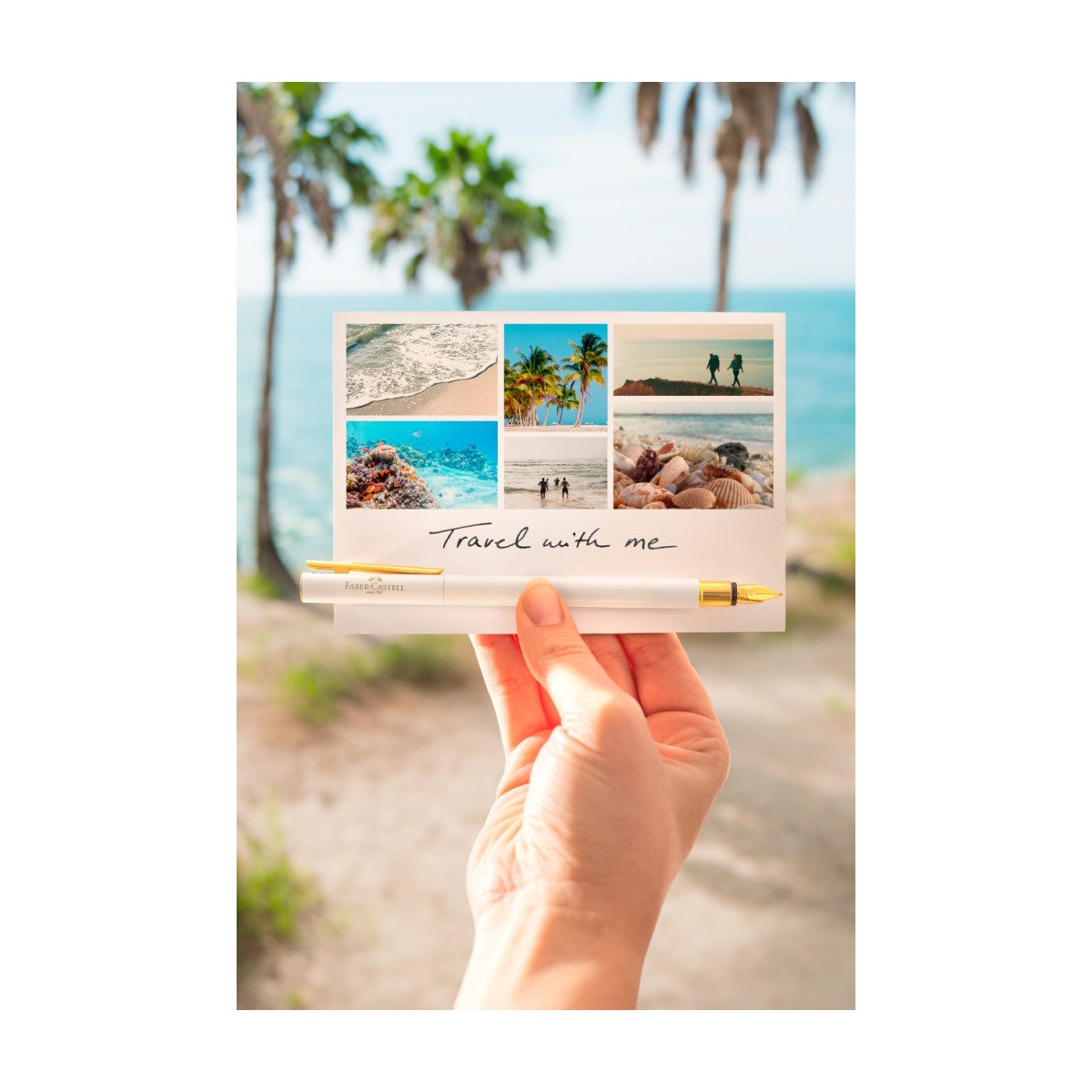 • Pióro wieczne Neo Slim Faber-Castell w kolorze w kolorze Marshmallow. To doskonały przykład elegancji i funkcjonalności. Produkty z tej serii są nowoczesne, wyjątkowo smukłe i gładkie w dotyku. Korpus pióra wykonany został z metalu w kolorze kremowym, co nadaje mu elegancji i trwałości. Elementy wykończenia i skuwka ze sprężynowym klipsem wykonane zostały z chromowanego i polerowanego metalu w kolorze złotym. Pióro wyposażone zostało w wysokiej jakości stalówkę ze stali nierdzewnej w kolorze złotym o szerokości linii pisania M (medium – średnia). Posiada podwójny system napełniania: konwerter z możliwością zamiany na naboje atramentowe. Konwerter dostępny osobno.