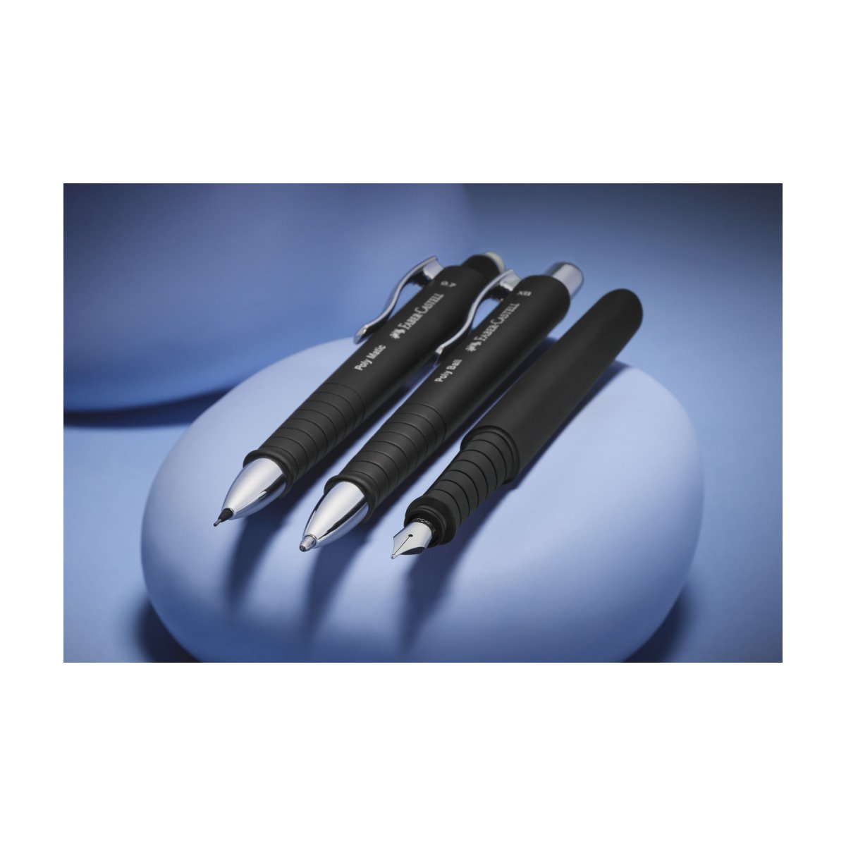 • Pióro wieczne Poly Pen od Faber-Castell w kolorze czarnym. Pióro z szerokością stalówki B i niebieskim atramentem to elegancka propozycja dla osób ceniących komfort i styl w codziennym pisaniu. Jego ergonomiczny, trójkątny uchwyt zapewnia wygodę użytkowania, a stalówka ze stali nierdzewnej gwarantuje wyjątkową płynność i lekkość pisania. Pióro wyróżnia się również subtelnym designem – czarny korpus z powłoką soft touch sprawia, że pewnie leży w dłoni. Dodatkowo, plastikowe elementy pióra wykonane są w 75% z plastiku pochodzącego z recyklingu, co czyni produkt bardziej ekologicznym.
