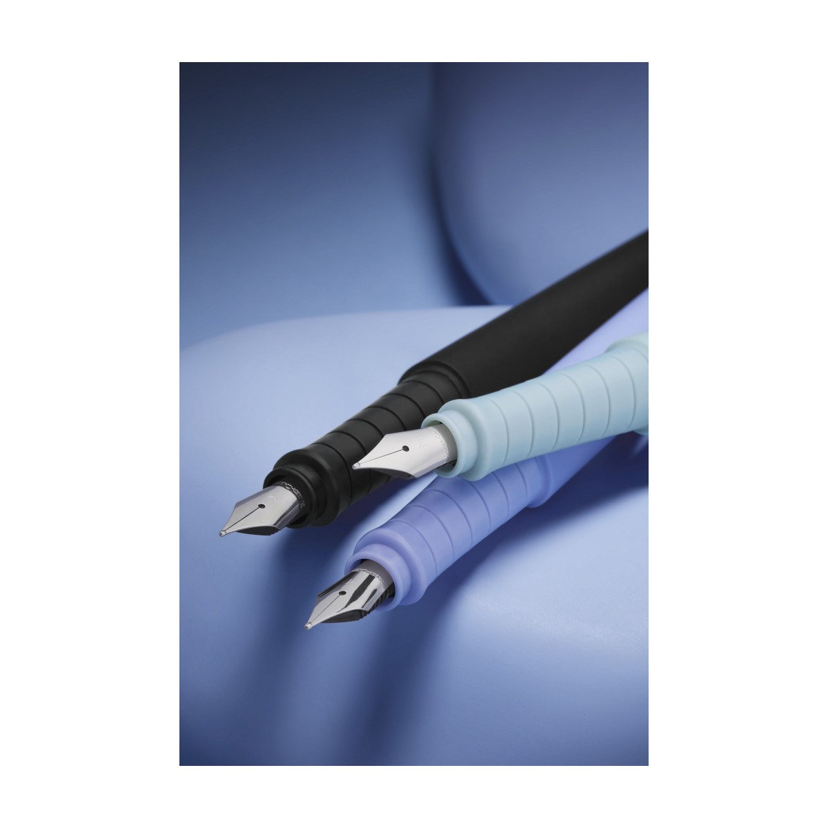 • Pióro wieczne Poly Pen od Faber-Castell w kolorze czarnym. Pióro z szerokością stalówki F i niebieskim atramentem to elegancka propozycja dla osób ceniących komfort i styl w codziennym pisaniu. Jego ergonomiczny, trójkątny uchwyt zapewnia wygodę użytkowania, a stalówka ze stali nierdzewnej gwarantuje wyjątkową płynność i lekkość pisania. Pióro wyróżnia się również subtelnym designem – korpus z powłoką soft touch sprawia, że pewnie leży w dłoni. Dodatkowo, plastikowe elementy pióra wykonane są w 75% z plastiku pochodzącego z recyklingu, co czyni produkt bardziej ekologicznym.