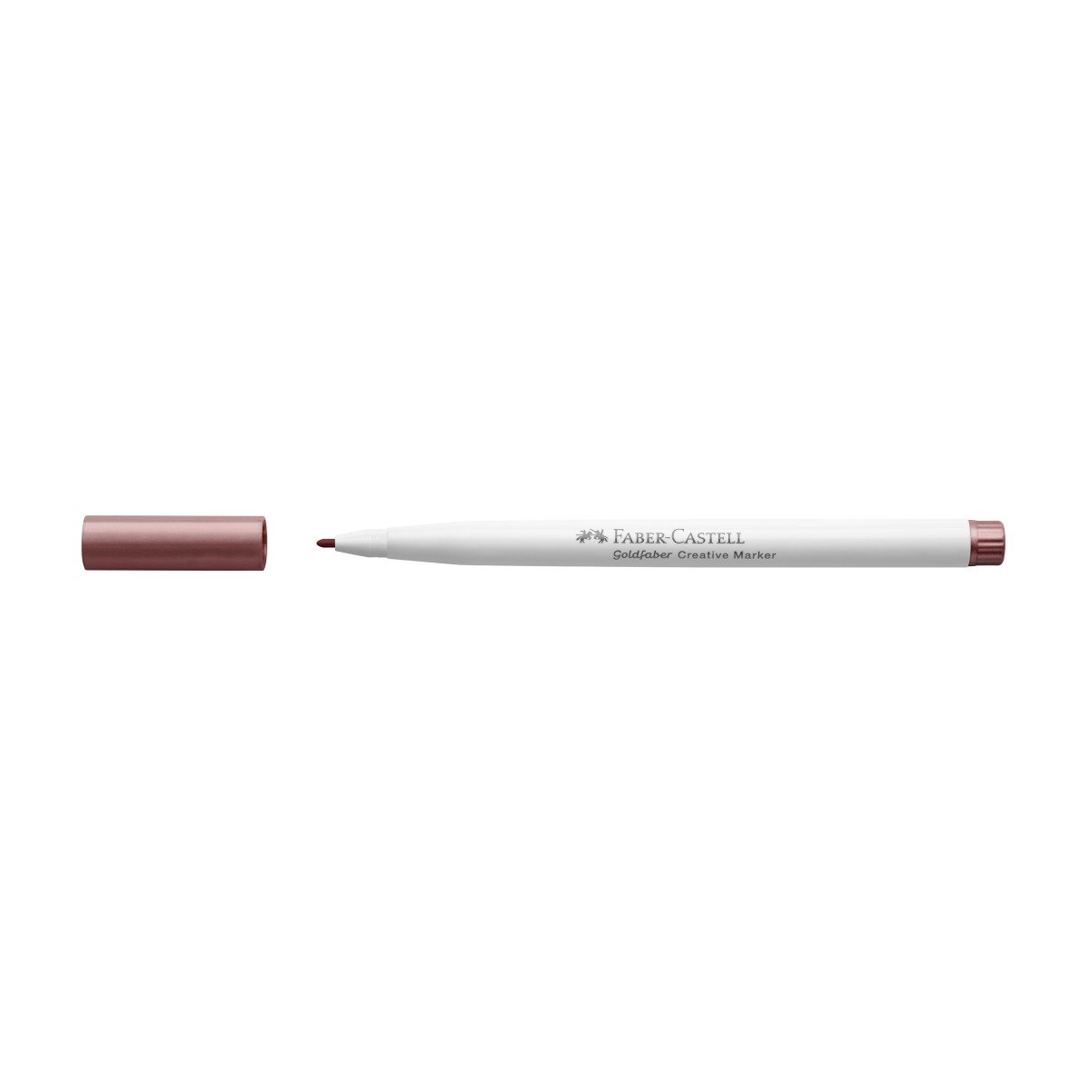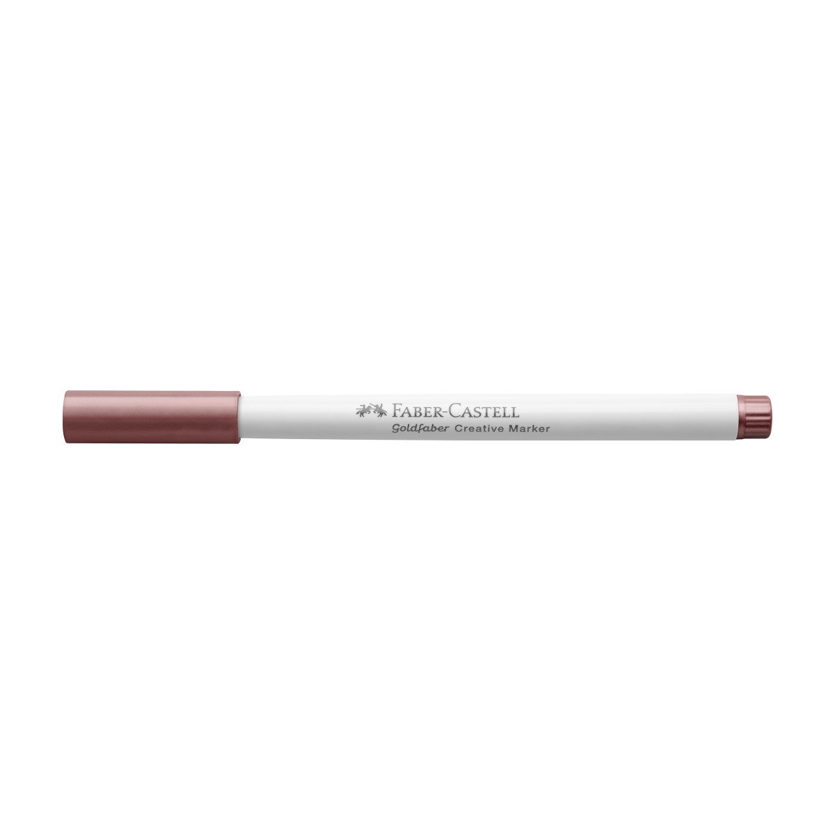 • Pisak kreatywny Goldfaber Creative Faber-Castell w kolorze metalicznym bordowym (crimson crush) z okrągłą końcówką piszącą w rozmiarze 1,5 mm. To uniwersalny marker stworzony z myślą o nieograniczonej kreatywności i inspiracji. Odpowiedni do wszystkich powierzchni takich jak papier, szkło, tektura, metal, tworzywa sztuczne, folia, drewno, kamień i porcelana. Doskonale sprawdza się na jasnych, kolorowych, jak i ciemnych powierzchniach. Wysokiej jakości tusz na bazie wody jest bezwonny i nie przesiąka się przez papier. Po wyschnięciu odporny na rozmazywanie i zachlapanie wodą. Dodatkowo po utrwaleniu w piekarniku 30 minut w temperaturze 160°C staje się wodoodporny. Nie nadaje się do mycia w zmywarce. Pisak nie wymaga wstrząsania ani pompowania, co zapewnia wygodne i bezproblemowe użytkowanie. Dostępny w 3 wariantach końcówek piszących - pędzelkowej, kaligraficznej oraz okrągłej o grubości 1,5 mm – dla swobodnej ekspresji i eksperymentowania z różnymi stylami pisania i rysowania. To niezastąpione narzędzie zarówno do codziennych projektów, jak i bardziej wymagających, artystycznych realizacji.